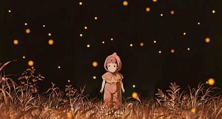 (b) the blue horizontal lens flares as Hui-soo looks from the field at the fully lighted school.